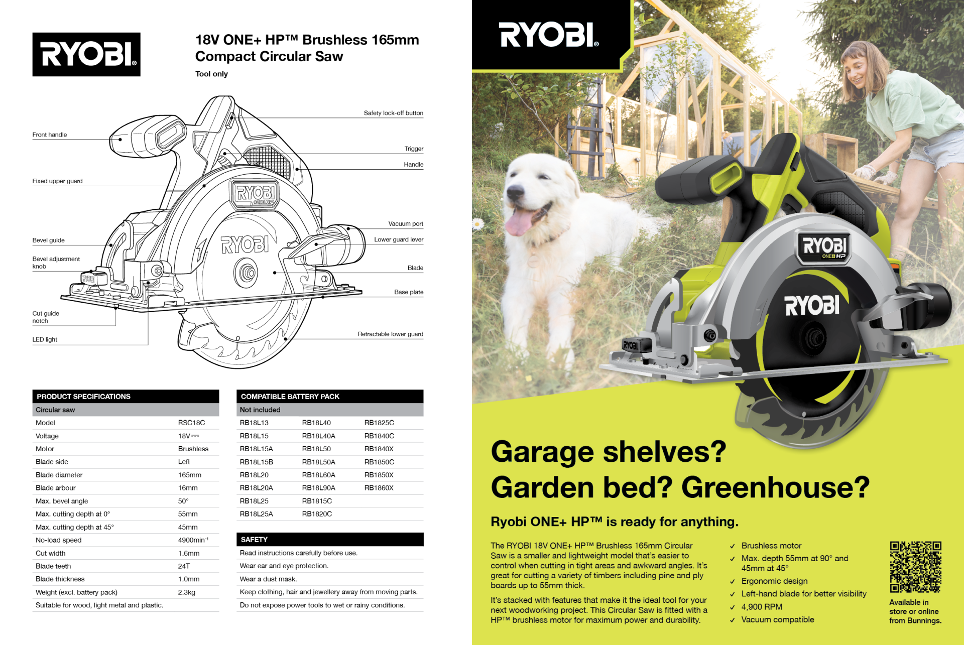 I chose to recreate the Ryobi One+ HP RSC18C Circular Saw. I produced both the technical line drawing and the colour rendering using vector tools in Illustrator, and laid out the specifications sheet and press advertisement InDesign.