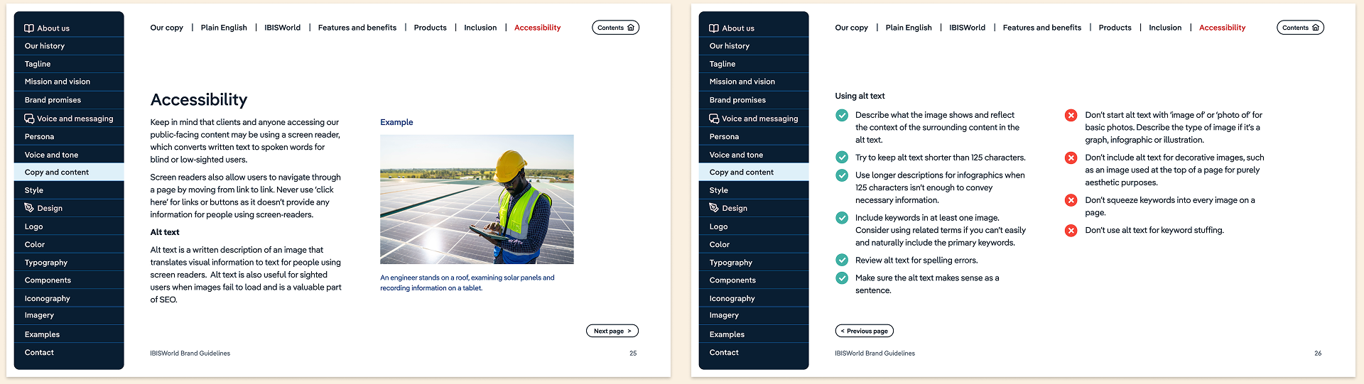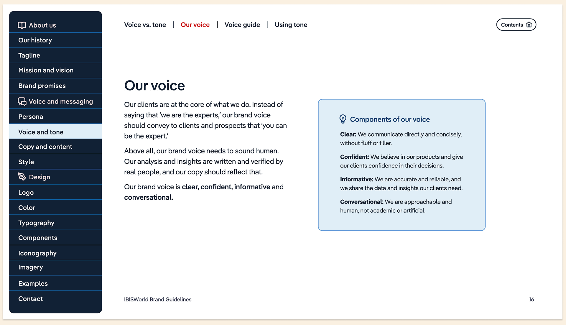 In 2023, I played a key role in IBISWorld's rebranding. My primary role in the project was to update the voice, tone and copy style. I also worked closely with the Lead Graphic Designer to produce the new brand guidelines document, providing both copy and design assistance throughout the project.